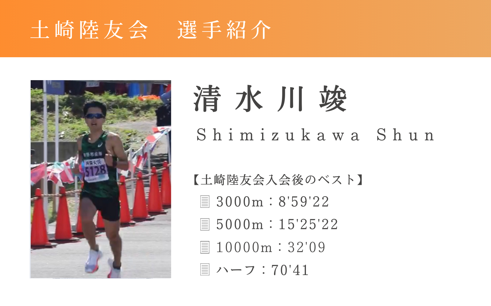 3000m:8’59’22(2025.8)